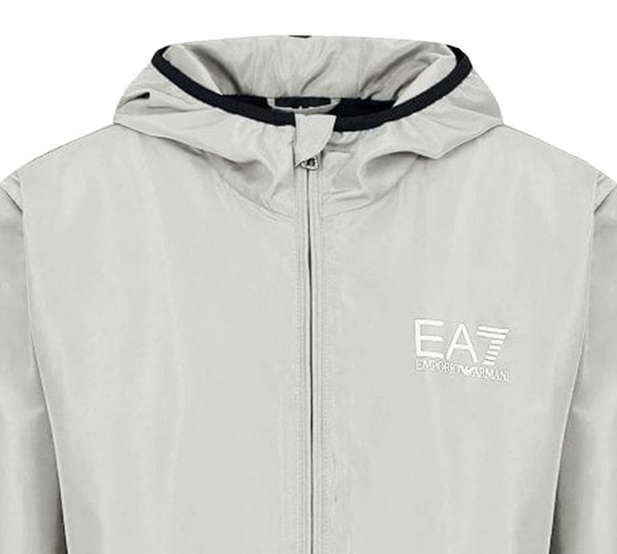 Realizzata in tessuto tecnico leggero, la giacca offre protezione da vento e pioggia leggera, risultando ideale sia per un utilizzo urbano che per momenti outdoor. Il cappuccio integrato regolabile, la chiusura full zip, le tasche laterali con zip e i polsini elasticizzati garantiscono una vestibilità comoda, pratica e sicura. Il taglio regolare si adatta alla silhouette maschile offrendo comfort e libertà di movimento, mentre il logo EA7 a contrasto sul petto sottolinea l’autenticità del brand e dona un tocco distintivo al look.
