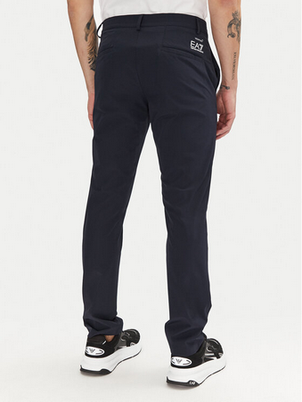 Realizzati in tessuto tecnico elasticizzato, offrono un mix ideale di comfort, praticità e stile. Il colore nero, intramontabile e versatile, li rende facili da abbinare con camicie, t-shirt o felpe per creare look casual, business-casual o sportivi di alto livello. Il design essenziale è arricchito da dettagli curati, come le tasche laterali a filo, il logo EA7 discreto e la chiusura con zip e bottone che dona un tocco elegante.