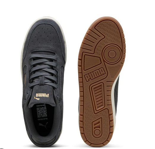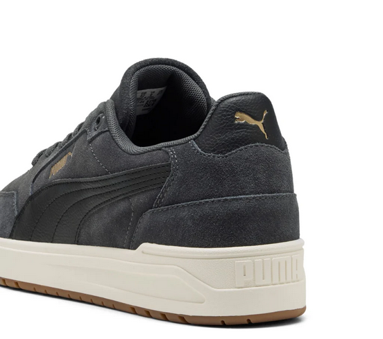 Realizzate con una tomaia in morbida pelle sintetica e suede premium, le Shuffle Down SD offrono un tocco raffinato e una sensazione di comfort costante. Il colore grigio neutro le rende estremamente facili da abbinare, ideali sia per outfit casual che per look più curati. I dettagli iconici, come il Formstrip Puma laterale e il logo sul tallone, donano uno stile riconoscibile e autentico, perfetto per chi ama un’estetica sobria ma di carattere.